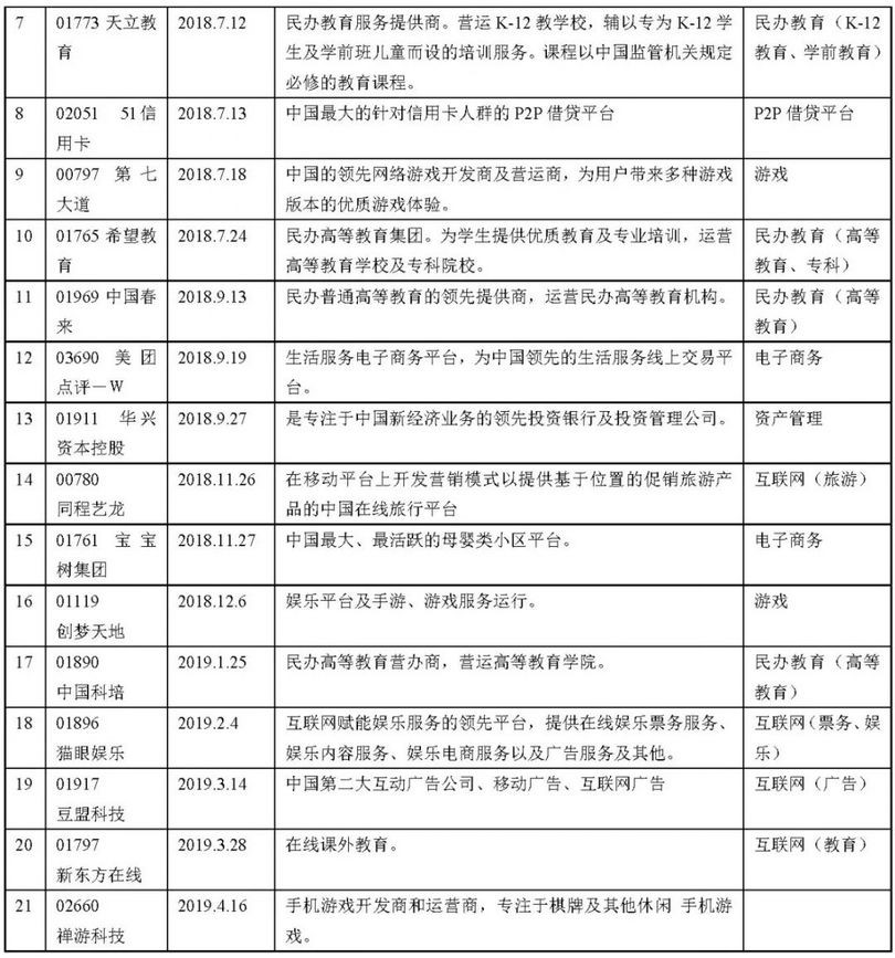 (自2018年4月的VIE新指引颁布后至2019年4月21日止采取VIE架构在香港上市的案例)