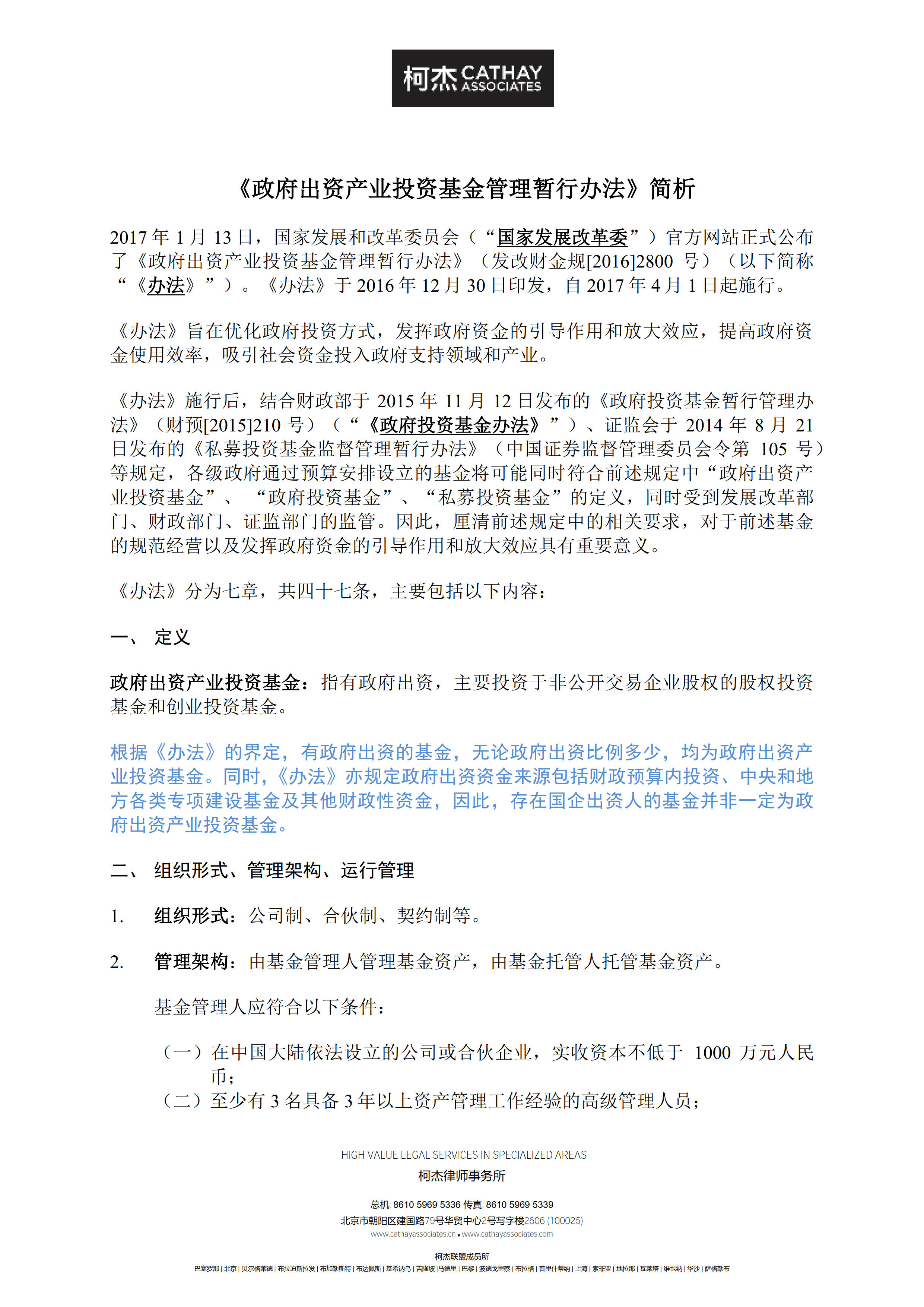 《政府出资产业投资基金管理暂行办法》简析