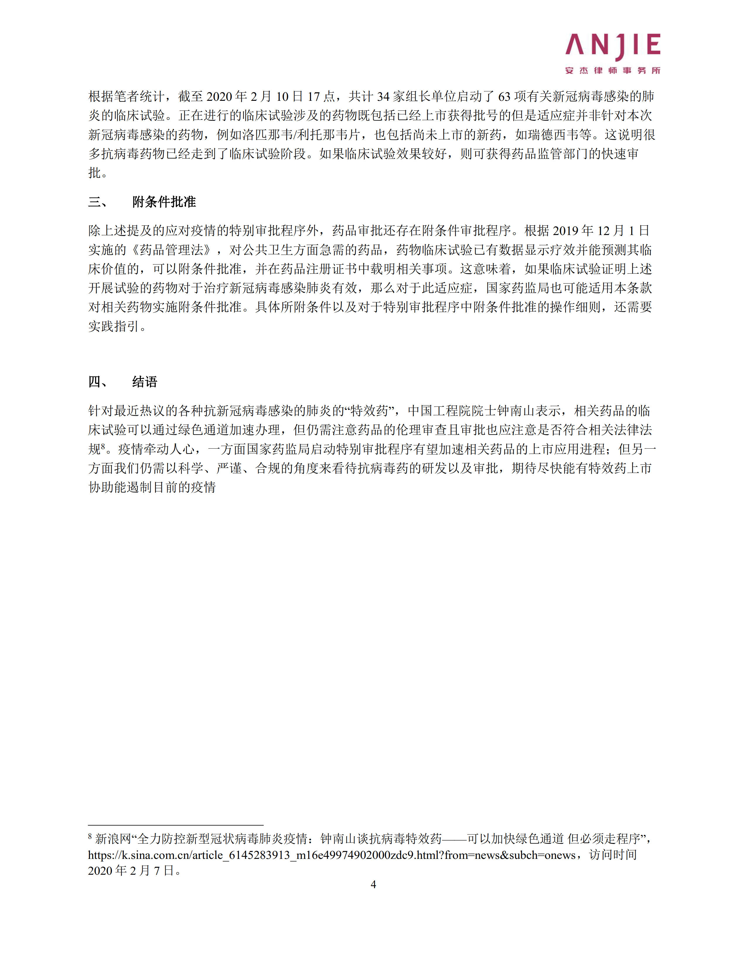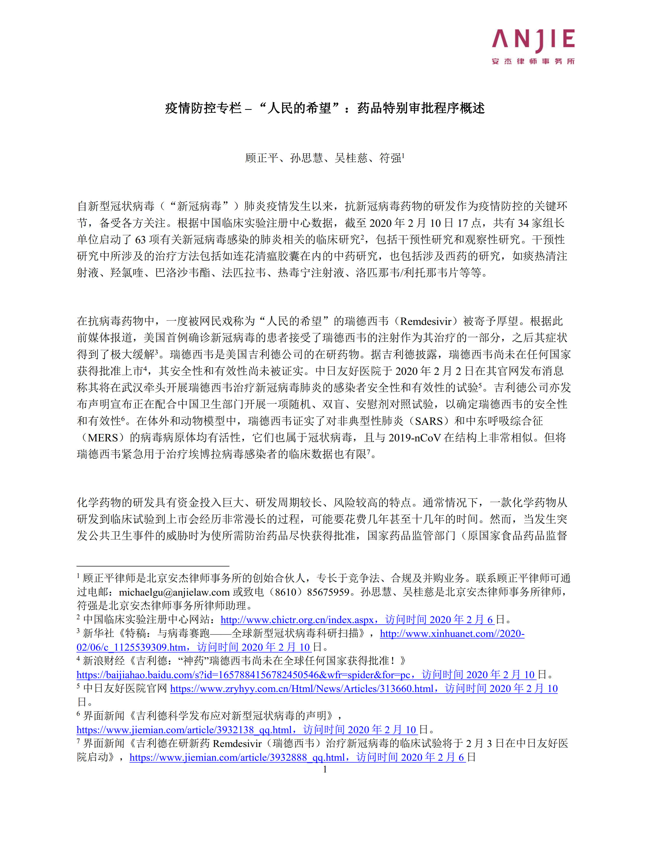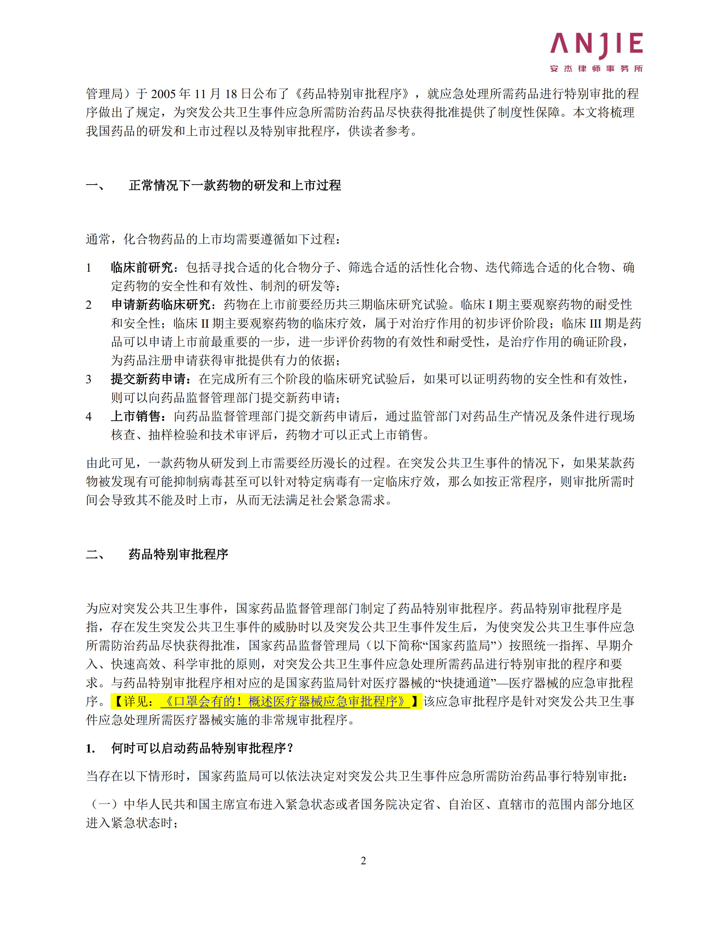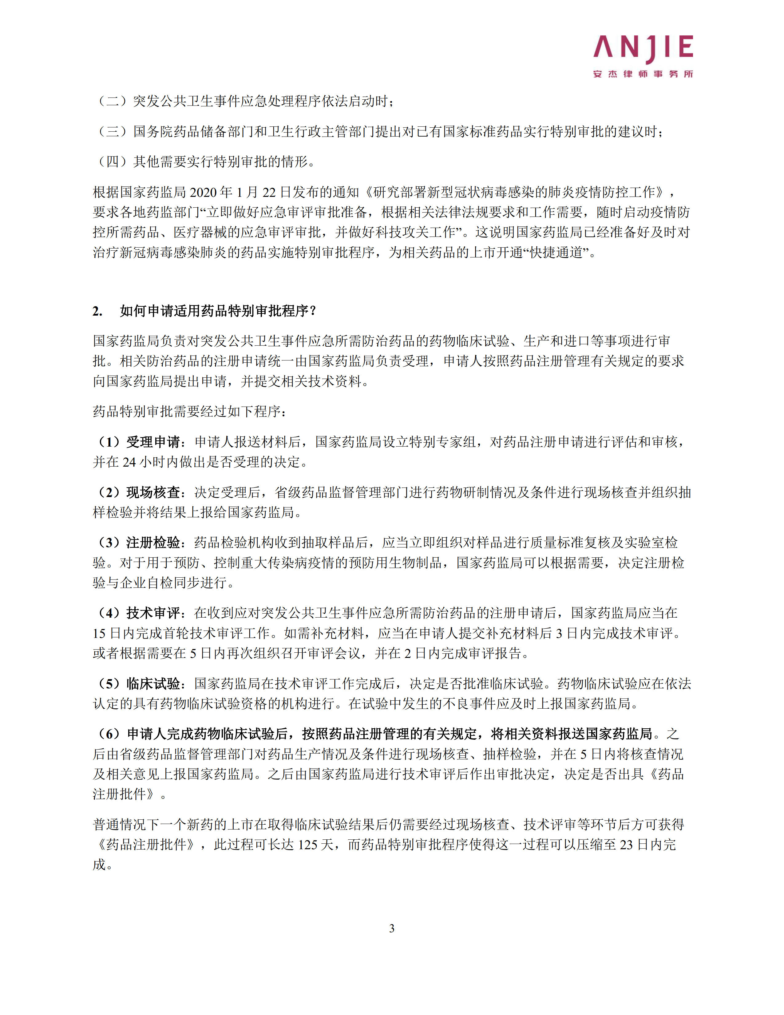 疫情防控专栏 – “人民的希望”:药品特别审批程序概述