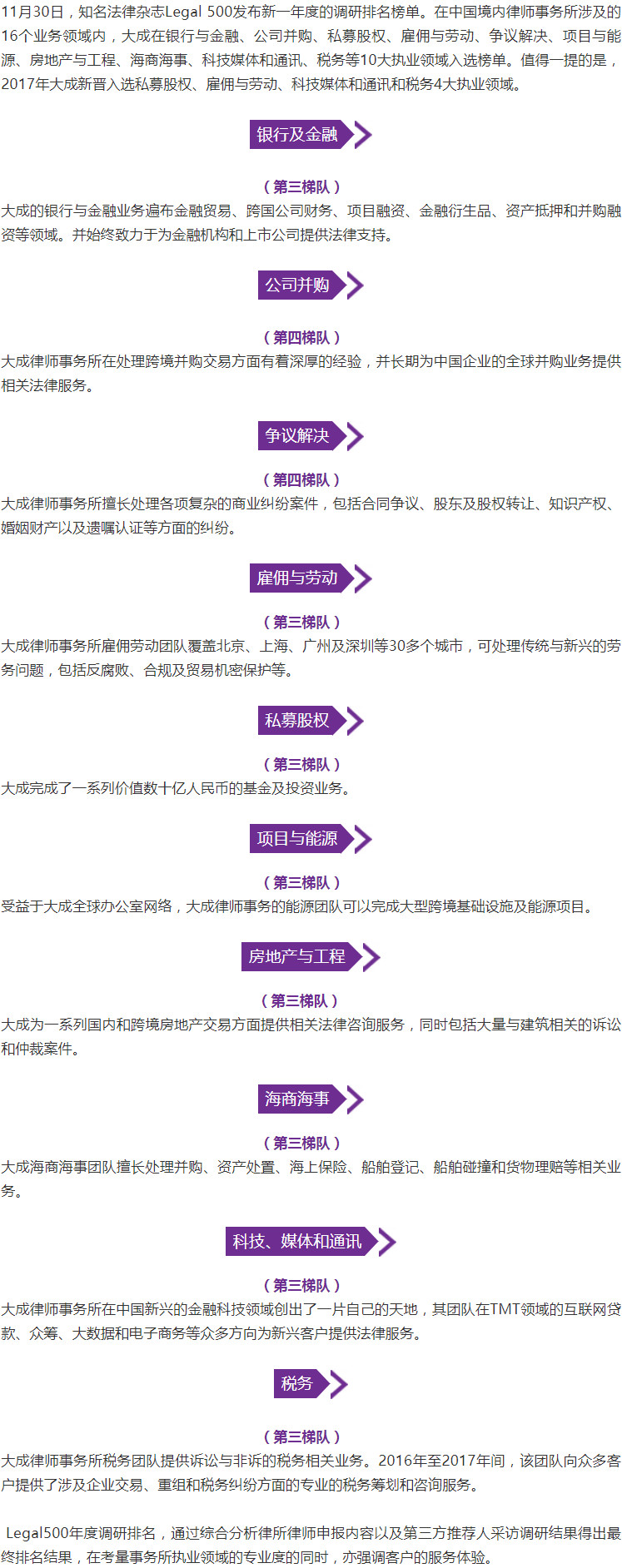 2018 The Legal 500亚太地区榜单,郭庆律师为大成“银行与金融”领域入选律师