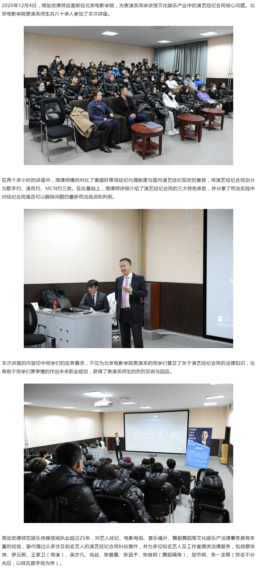 观娱动态 | 周俊武律师为北京电影学院表演系讲授演艺经纪合同实务问题