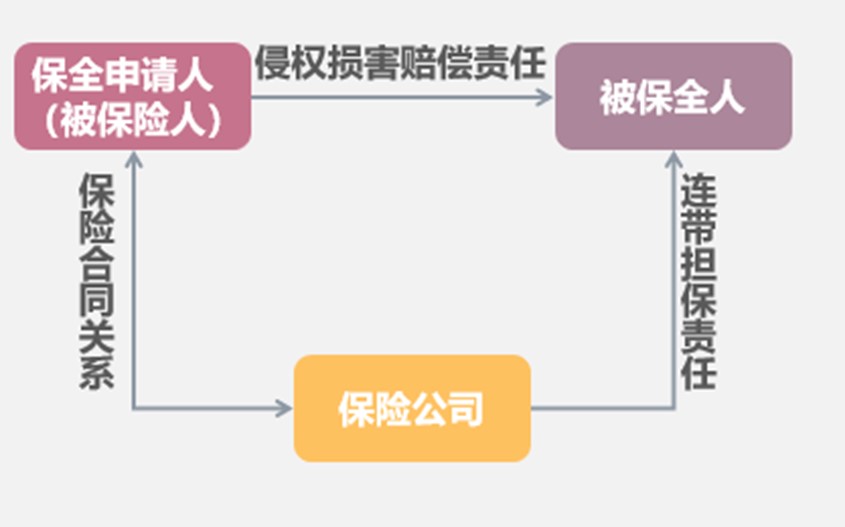 如上文所述,“诉讼保全责任保险合同的履行中,存在对内对外两重法律关系。对内,由保险人与投保人、被保险人形成保险合同关系,该层法律关系对于双方权利义务的安排应当符合保险法等法律法规的强制性规定;对外,即由保险人依据《最高人民法院关于办理财产保全案件若干问题的规定》第七条以诉讼财产保全责任保险担保函的形式向法院提供司法保全担保。担保函一经法院认可,即作为司法担保文件在司法保全的全过程中保持稳定的担保效力,不可被自由撤回或解除。”[2](具体可见下图)。