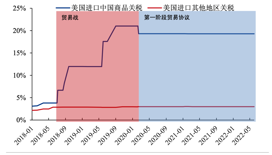 美国对中国及其他地区征收关税情况对比(图表来源:PIIE、粤开证券研究院)