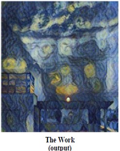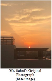 By coincidence, the United States Copyright Office (the “USCO”) tackled a seemingly identical case on December 11, 2023.[8] Below are two figures respectively showing an original photograph taken by Mr. Sahni (i.e. the base image) and the Work titled “SURYAST” generated by an AI app (i.e. “RAGHAV Artificial Intelligence Painting App”) (i.e. the output of AI) involved in this case. The Work, not hard to perceive, was derived from the style image (Vincent van Gogh’s The Starry Night).