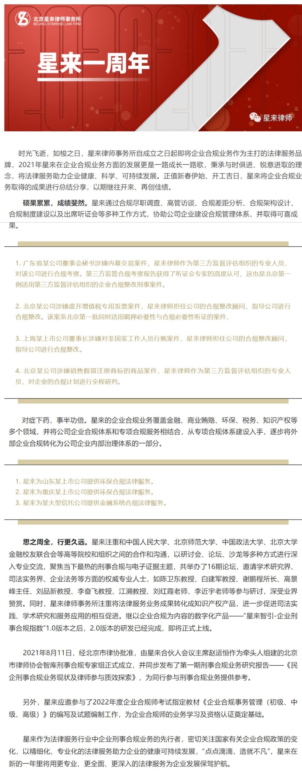 【星来一周年】星来周年业绩回顾——企业合规篇