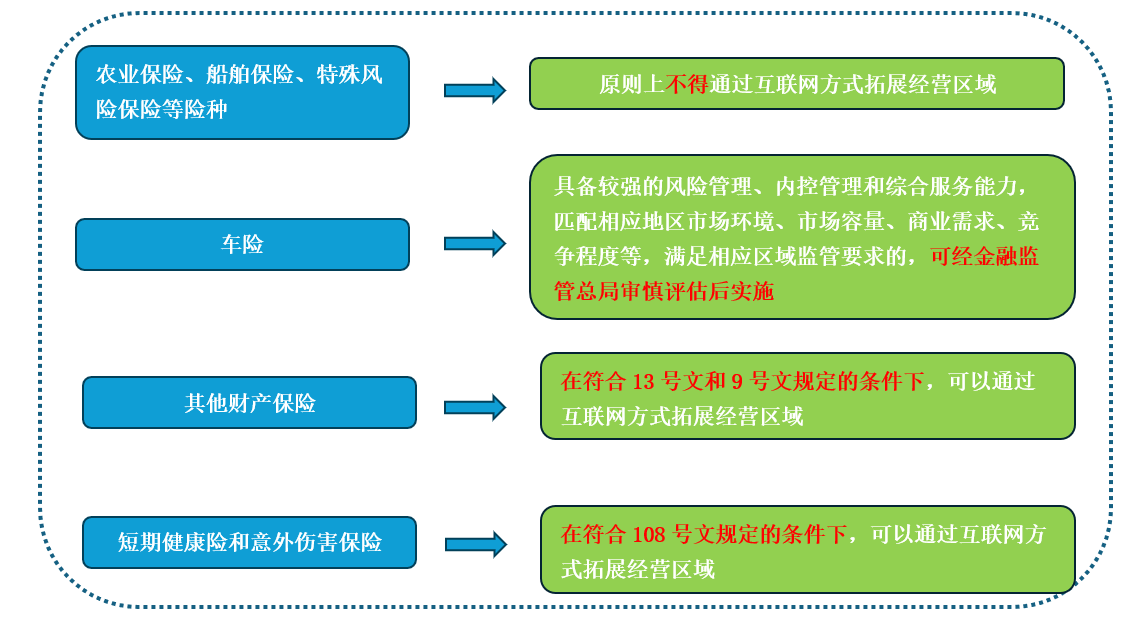 - 可以通过互联网方式拓展经营区域的险种范围